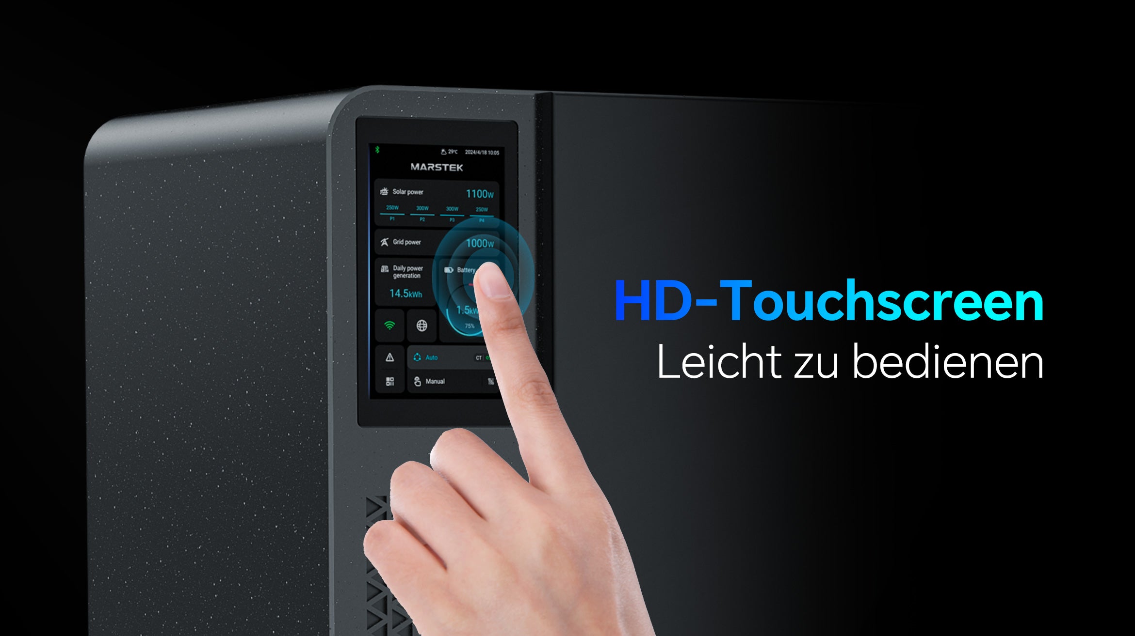Sie können die Entladezeit und -leistung manuell über den HD-Touchscreen des Jupiter oder durch Hinzufügen des Jupiter zur Marsrtek App einstellen. Alternativ können Sie den automatischen Entlademodus auswählen, wenn Sie ihn mit einem Smart Meter koppeln. Der Jupiter entlädt sich dann gemäß Ihren Entladeeinstellungen oder basierend auf den vom Smart Meter erfassten Daten.