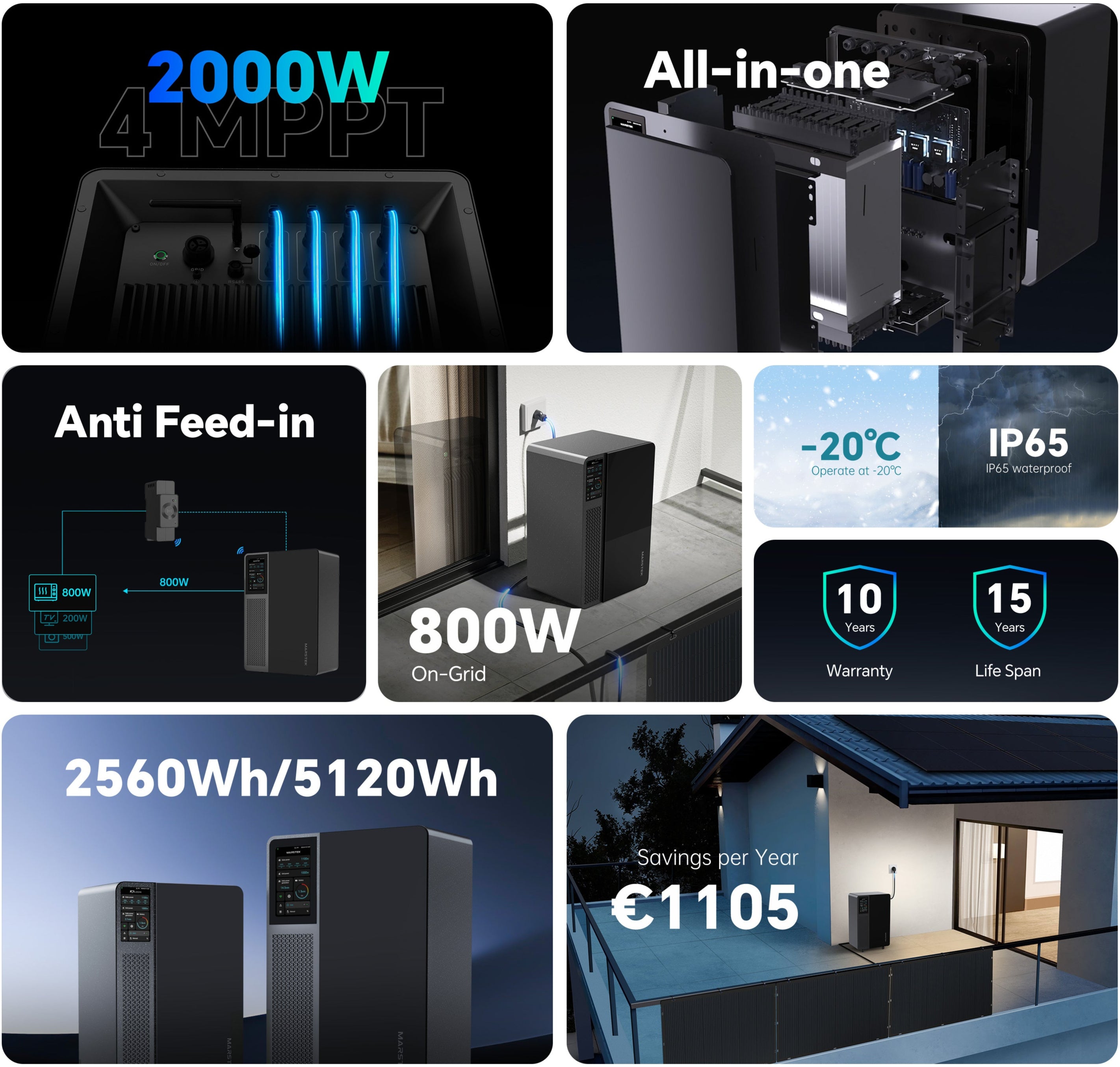 Ausgestattet mit 4 MPPT unterstützt der Jupiter eine PV-Einspeisung von bis zu 2000 W und ist in den Varianten 2560 Wh und 5210 Wh erhältlich.