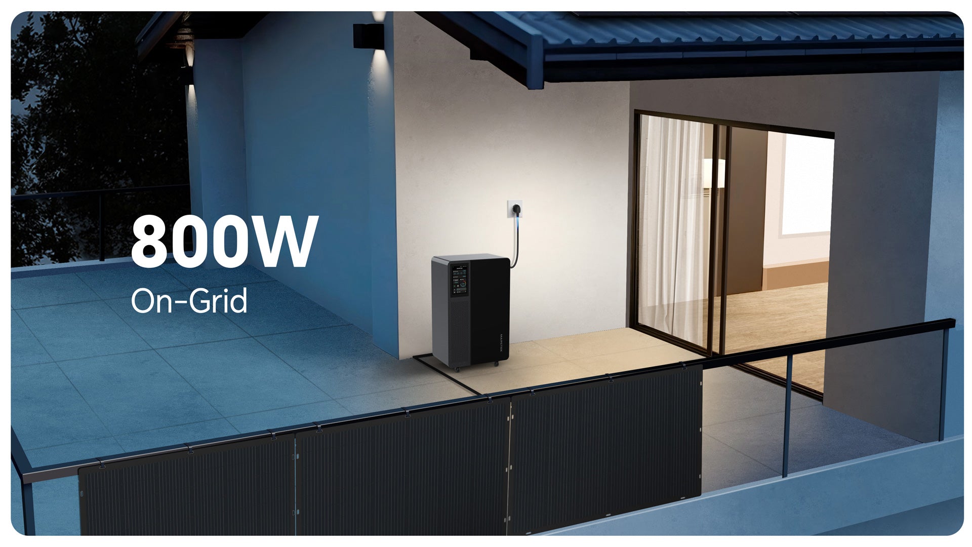Jupiter All-in-one speichert die von den Solarmodulen erzeugte Solarenergie und speist sie über einen eingebauten Mikro-Wechselrichter in das Netz ein. Die maximale Solareingangsleistung beträgt 2000 W. Die Netzleistung beträgt 800 W, die manuell oder automatisch entsprechend dem Smart Meter angepasst werden kann.